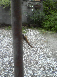 ピーマンの支柱にとまっているのをダーリンがみつけ、リビングの窓をそーっと開けて写真を撮りました♪