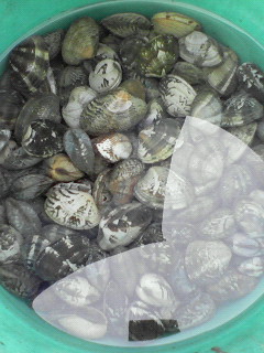 ダーリンとお友達は魚狙い。女性陣はあさり掘りに専念しました。アサリは2トン放流されているというだけあって、けっこう捕れたと思います!!潮干狩りなんて、子供の頃以来だったので、かなり夢中でおしりがちょっとぬれてるのも気づかなかったくらいです^^;w