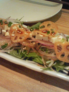 ・水菜と豆腐のサラダ(揚げれんこん添え)