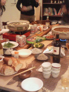 これも、休もうかと思いましたが、私が会費を持ってるし^^;久しぶりに会える人も多かったので、行く事に。自分たちで材料を買ってきて、鍋パーティー!!海鮮鍋となぜかもう一つは土鍋でビーフシチューw。