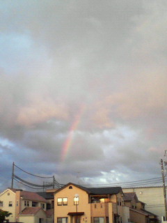 写真は、わかりづらいですが夕立の後、綺麗に出ていた虹。