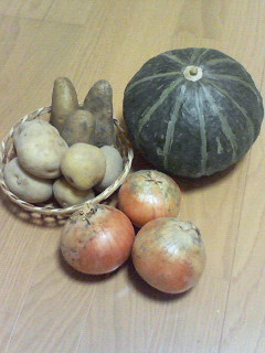 現在札幌に住む友人から、かぼちゃ・玉ねぎ・じゃがいもが届いた。