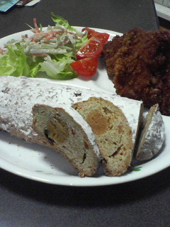 シュトーレンは、ウィーンの伝統的なお菓子です。ミナちゃんはウィーンの先生に習ったそうで、真ん中にナッツペーストの入ったもので、ドライフルーツやナッツペーストが絶妙に味に深みをましているような気がします。