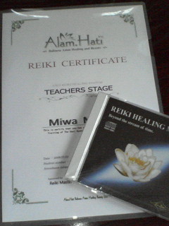 今日、大阪でバリニーズをされてる「Alam. Hati」の後藤先生より、「レイキ・ティーチャー」のディプロマ(認定証)が届きました(^^)