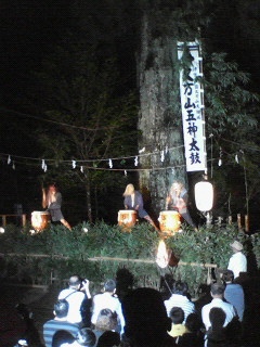 大きなご神木かなと思われる木の前に設置された舞台は、見事に自然と一体化して、松明なども焚かれ、本当に幻想的な時間でした。