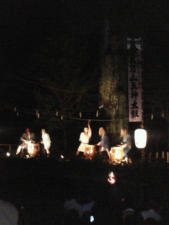 昨夜は、整体の師匠のところのお弟子さんで、いつも指導に来てくださるikeda先生が、地元の「三島神社」夏祭りに、五神太鼓の一人として出演されるということで、夫婦で久万高原町まで行ってきました。