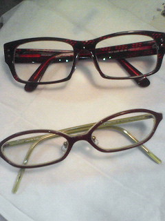 普段はお互いコンタクトなので、夜コンタクトをはずしている時とか、目の調子が悪くてコンタクトが装着できない時くらいしかかけないのですが、二人とも購入したのはずいぶん前で、メガネをかける人はよくわかるかと思いますが、ダーリンはふち無しのメガネ(かなり前に流行りましたよね^^;w)私はというと、ドラマの「ヒーロー」の時に松たか子ちゃんがかけてたモデルを、当時うれしげに買った物。