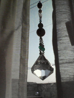 朝、ダーリンを見送った後、サロンに入ると東側の窓に飾ってあるサンキャッチャーに朝日が当たって、部屋にいくつもの小さな虹が出来てました(^^)