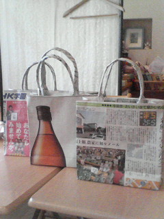 先日、Mieuxで行われた新聞紙のエコバッグ作り。講師役の私だけが見事に失敗したという話は書きましたが^^;w取っ手の部分とか、それを補強する為の新聞紙などはそのまま残ってたので、きちんと作り直しました。