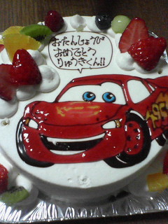 そしたら、ディズニー映画の「カーズ」のマックィーンのケーキでした。