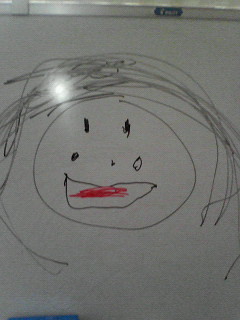 「みーちゃんにプレゼント」と言いながら、ホワイトボードまで連れて行かれて、見たら私の顔を書いてくれてました(^^)顔の丸さなんてそっくりです^^;w