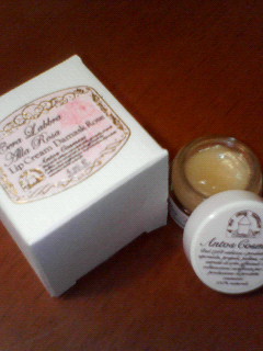 その時に、4月に松山に帰ってきてたときに、アロマトリートメントさせてもらって、少しサービスさせてもらったら、そのお礼にといって「ローズリップクリーム」をプレゼントしてくれました